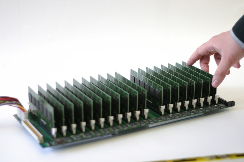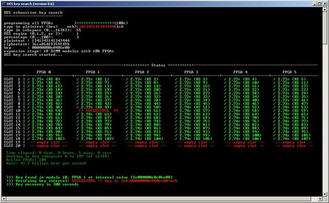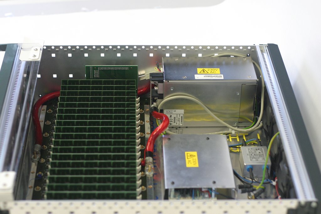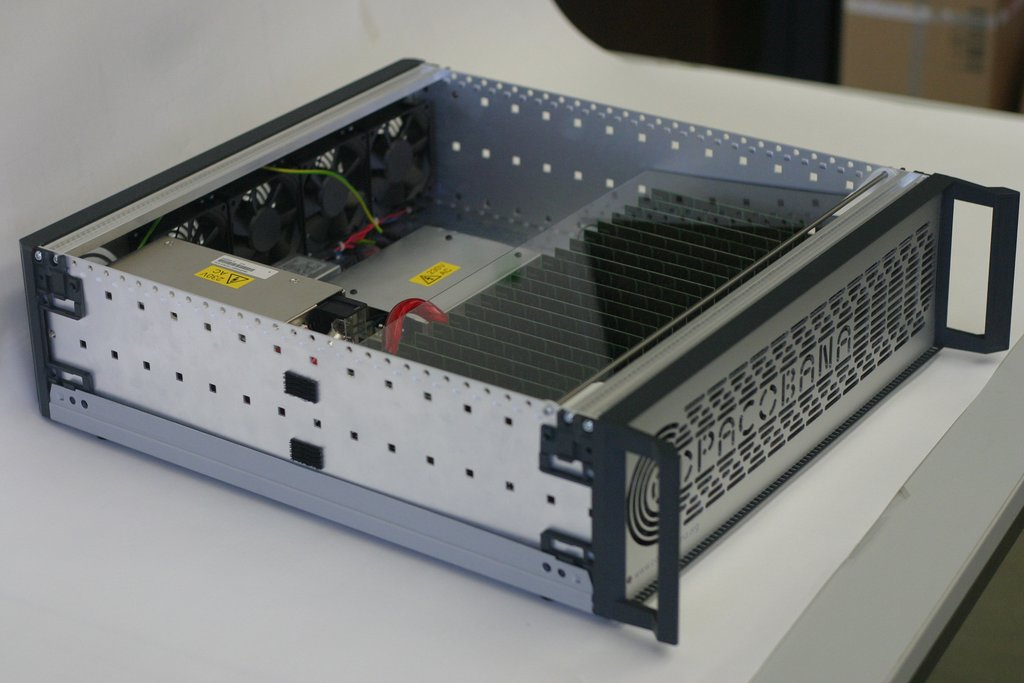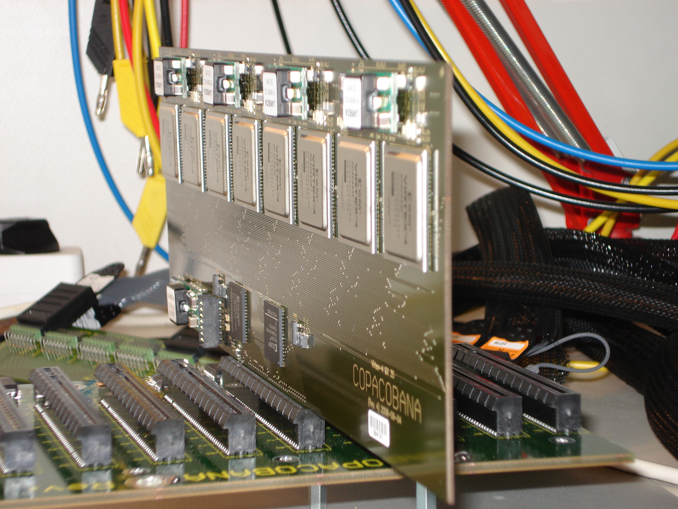 This site shows pictures of the first prototype of COPACOBANA. It hosts 120 FPGAs and is powered by a 600W power supply. The housing consists of a junction box with nine standard 8cm fans.